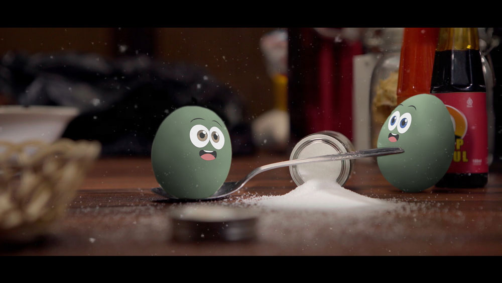 On a dining table, two playful Salted Eggs are scroned by a prideful box of Fried Chicken, igniting a clash between arrogance and humility. What follows is a spirited showdown—one boastful side dish against the united front of the humble and overlooked.