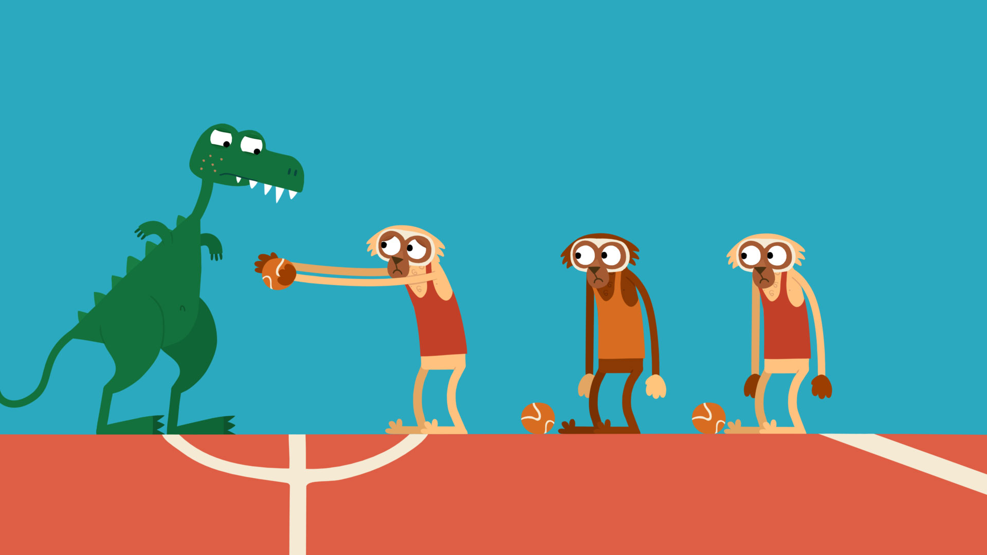 KidsSceneT-RexJulia Ocker2022GermanyAnimationAll Ages03.38No DialogueT-Rex is playing with the three monkeys. Sadly, the T-Rex is very bad at playing basketball. View Schedule
